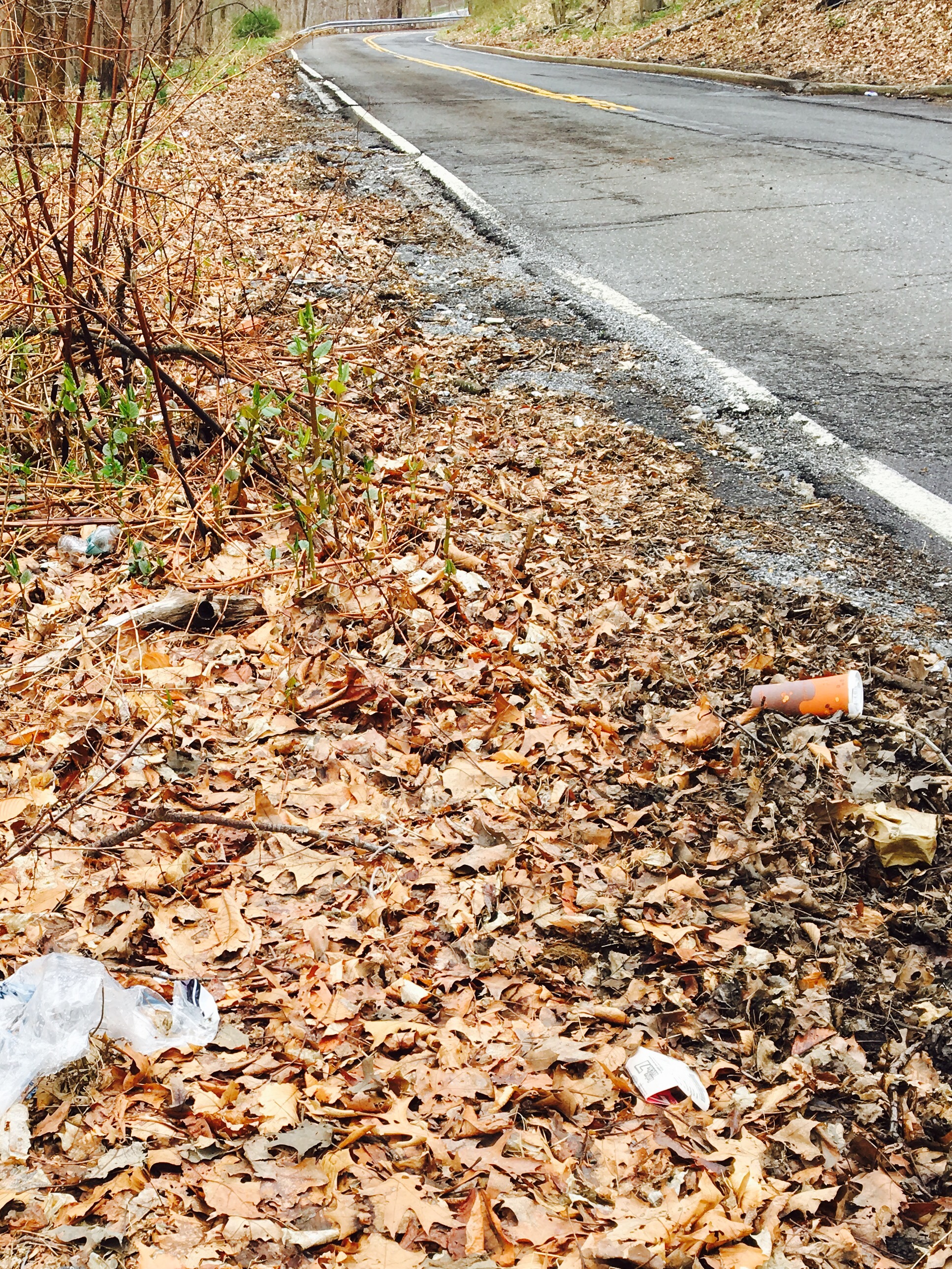 One day, driving along the curvy road next to my street, my eye latched onto a white piece of paper stuck in the grass on the side of the road. As soon as I saw that piece of litter, I saw the rest – cups, containers, bottles. There was too much to count, too much for one person to even stop and pick up.