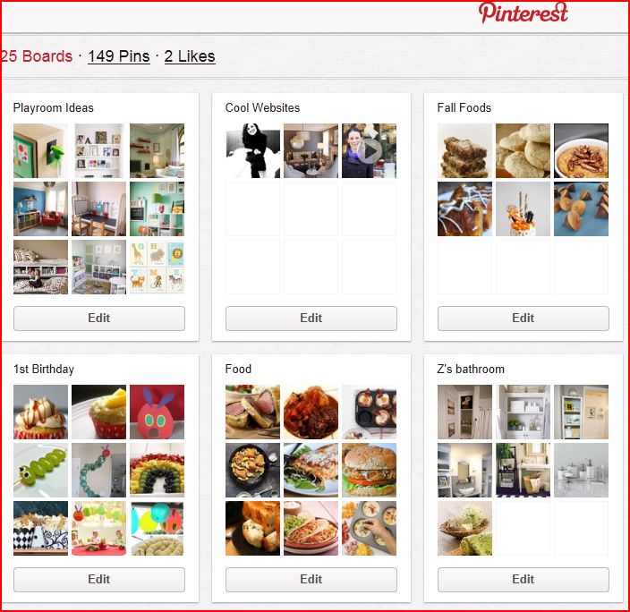 So, if you don’t know already, Pinterest is an online bulletin board that let’s you create Pins and Boards. Your Boards are categories that you customize (like Food, Style, Books, etc). Your Pins are the items that you “pin” onto your board. So a good recipe might get pinned onto your “Food” board or you might “pin” your favorite book onto “Books to Read”.
