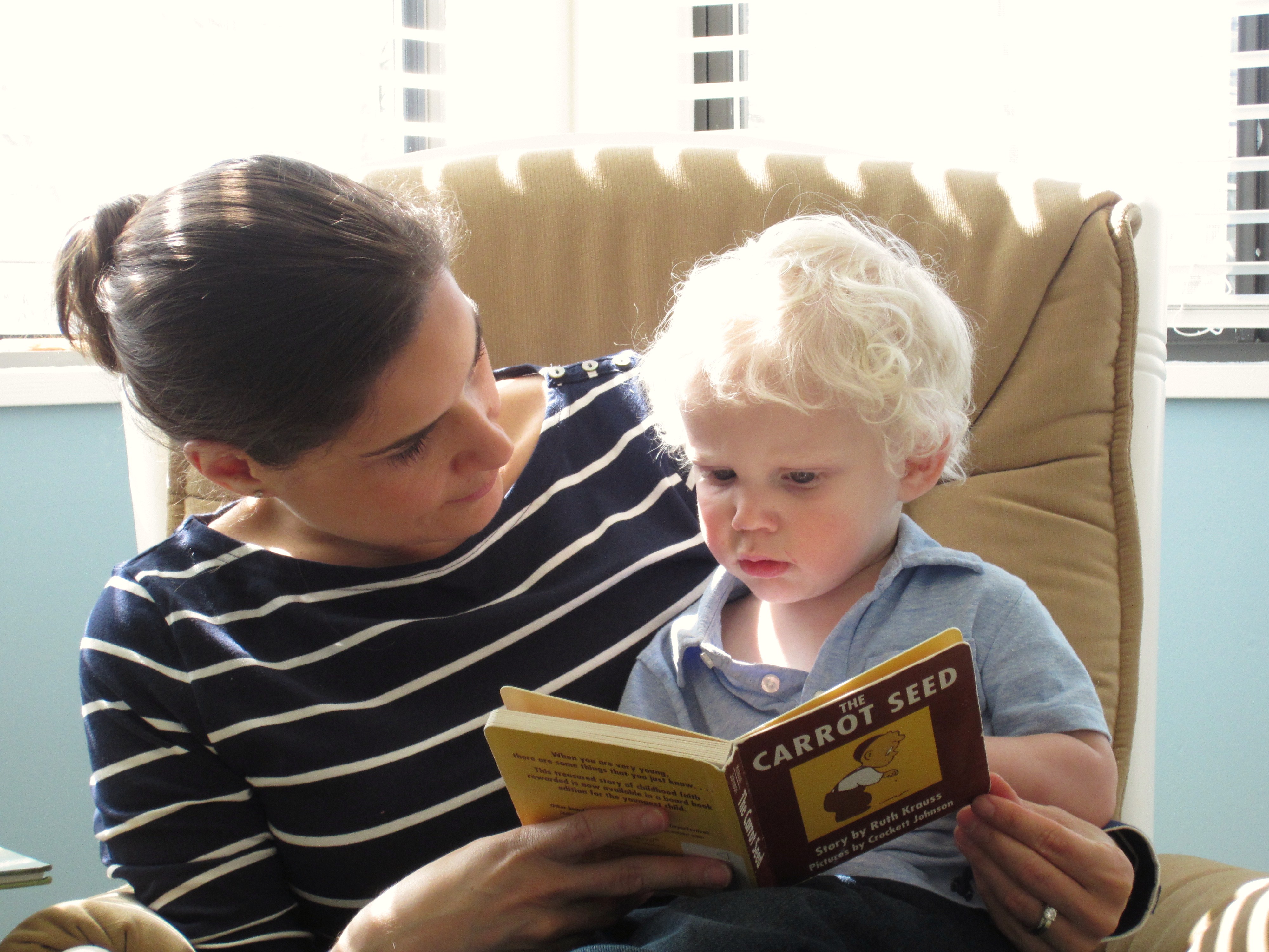 I understand wanting to read “Good Night Moon” – it’s a cool little story. I really enjoy the newly illustrated “The Little Engine that Could” because I like to do the sound effects and it’s beautiful to look at. But “The Carrot Seed”? After reading the first few pages, I’m ready to crawl into the crib and head for a snoozefest.